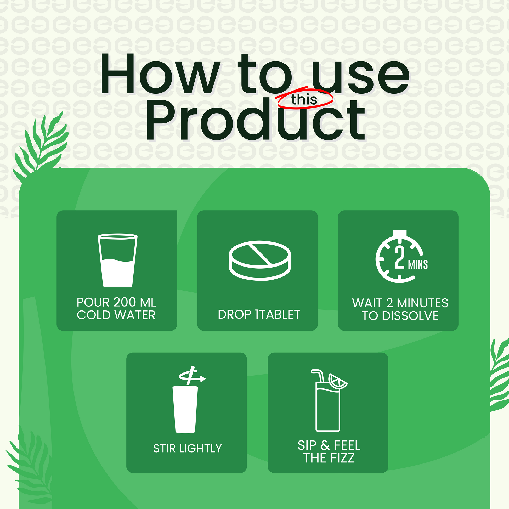 Dissolve 1 tablet in a glass of cold or room temperature water. Wait for it to fully dissolve and drink immediately. Recommended to consume in the morning on an empty stomach for best results.