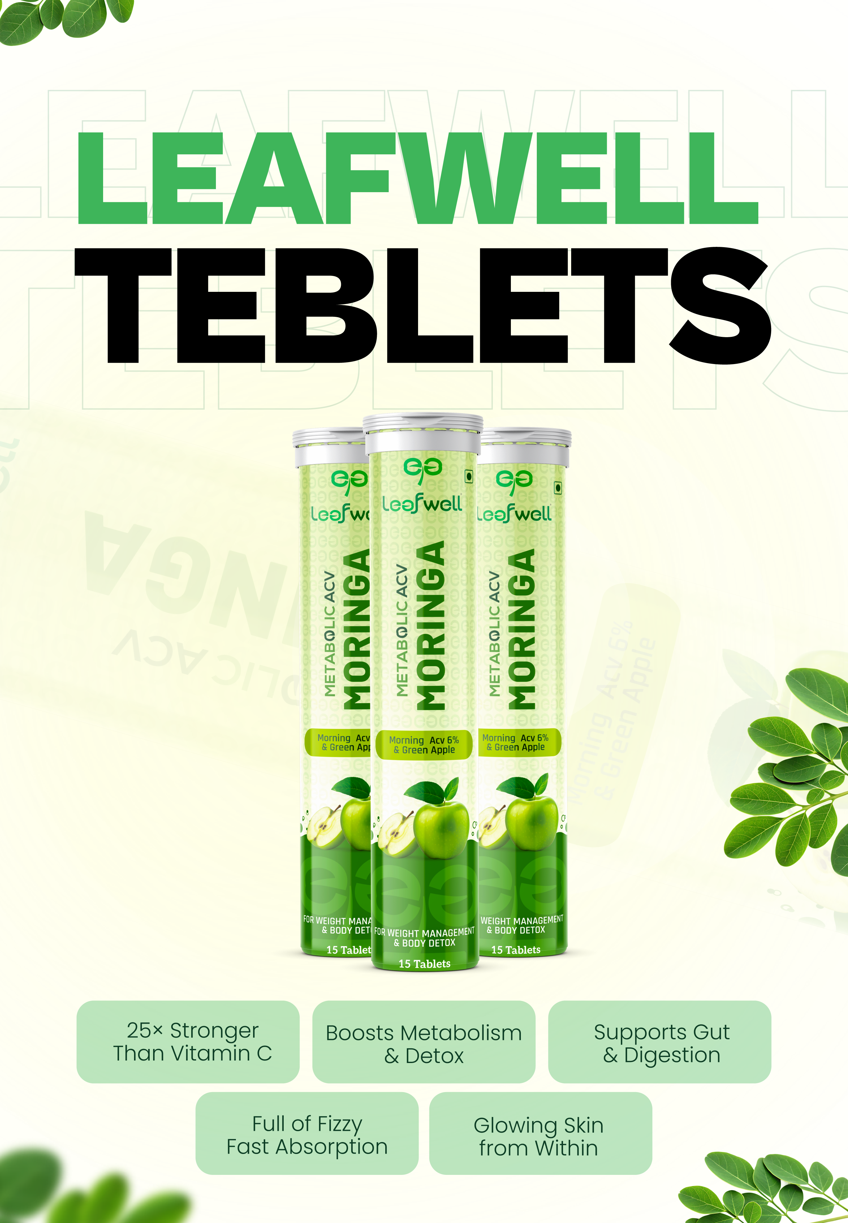 Boost your health and metabolism naturally with Leafwell Metabolic ACV Moringa Effervescent Tablets.
